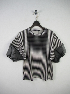黄なりに近い白のボトムスはゆるシルエットでウエストマークなのでとてもはきやすい。ボリューム袖もキュートなカットソーでデイリーも楽しく着こなしたい!カジュアル度80%、フェミニン度20%。