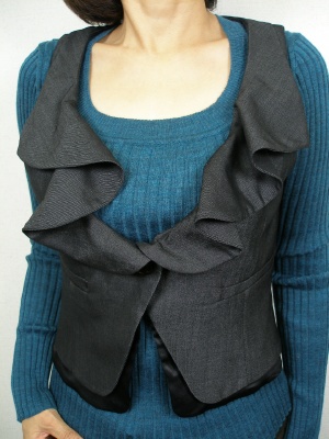 この秋は、いつもよりフリルを多く取り入れてみたい。全身を黒っぽくまとめれば甘すぎずモードな雰囲気!スタイリッシュ度60%、エレガンス度40%。