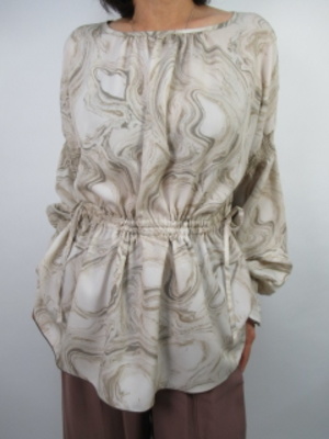 上下ともトロみのある生地で着やすさ重視です。トレンディなトップスでこの秋注目のコーディネートを!スタイリッシュ度70%、カジュアル度30%。