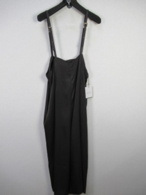 流行りのオールインワンは肩紐が合皮で細い華奢なデザインを選ぶと大人っぽい雰囲気が出る。フィット感のあるカットソーで合わせるとボトムスのワイド感が際立っておしゃれ度を増す!スタイリッシュ度70%、カジュアル度30%。
