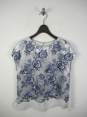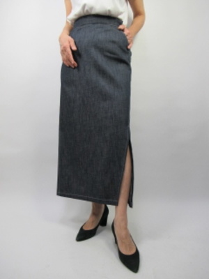 花の刺繍がエレガントなブラウスはタイトなスカートで大人っぽくコーデ。スカートの生地はダンガリー生地で一見カジュアルな印象ですがスリットがとても雰囲気を醸し出します!エレガンス度70%、スタイリッシュ度30%。