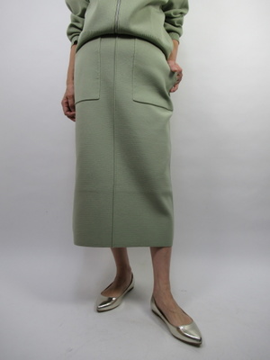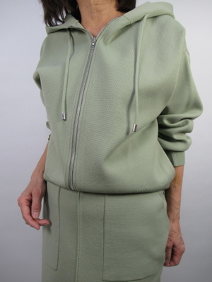 (上下のニットアンサンブル)タイトスカートにパンツのセットアップはニット地でとても着心地の良いニットパーカなのでカジュアルなイメージですがセットで着るとおしゃれなデイリーファッションになります。