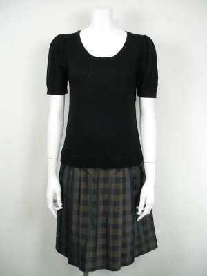 トラッドなチェック柄をシックな色味でフェミニンに。袖を絞ったボレロ風カーディガンでシルエットを引き締めます!フェミニン度90%、スタイリッシュ度10%