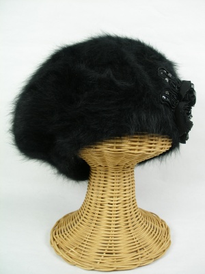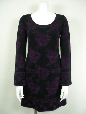 黒にパープルの花柄が目を引くワンピはオールブラックでシックに。アンゴラのベレーや光沢レギンスで素材の質感を遊んでみて!エレガンス度60%、スタイリッシュ度40%。