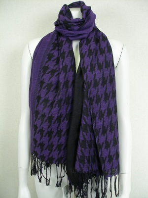 ジャケットとパンツのベーシックなコーディネートは、ストールをアクセントに。実はパンツも細かな千鳥格子でストールとリンクさせているのですよ!スタイリッシュ度100%。