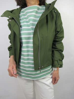 (カジュアルパンツはゆるい感じがいい)ウェストゴムでやや太めのカジュアルパンツは休日にとても重要。温度調整には短丈のブルゾンを合わせて。