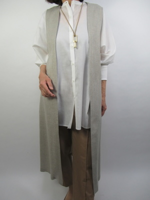 (落ち感のある生地でスタイリッシュなジレスタイル)さらっと落ち感のある生地のジレをシャツに合わせてスタイリッシュなコーデ仕上げました。