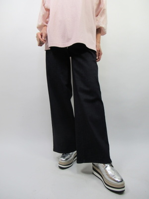 (久々ワイドデニム登場)ワイドデニムもあまり広く広がりすぎないこのくらいのタイプがとても重宝します。さっとカットソー1枚でデイリーファッションが完成。スニーカーにもよく合うワイドデニム。