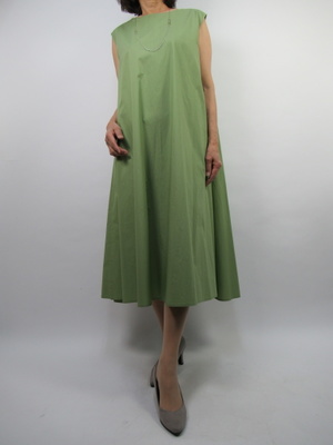(Aラインのシンプルワンピース)裾広がりのAラインワンピース。少しボリュー感があるのでトップスに短丈のジャケットを羽織って。薄手の透け感のある生地なので夏でも涼し気です。