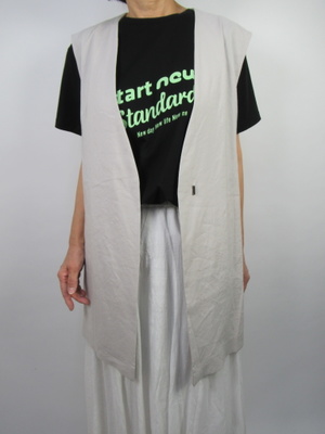 (流行のジレコーデ・・・短丈をチョイス)流行のジレファッション。今回は少し短い丈のジレをご紹介します。白のスカートとのバランスがとてもおしゃれな大人コーデ。