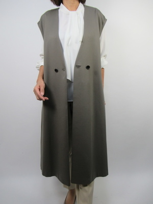 (人気ジレを着こなす)パンツコーデに人気のジレを合わせる。トップスにはリボンタイでスタイリッシュな中にフェミニン要素をプラスしたジレコーデ。