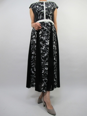 (白×黒のコンビネーションはおしゃれなお出かけスタイル)白×黒のコンビワンピース。スカート部分にはプリーツデザインを取り入れてよりおしゃれに仕上げてます。羽織にも同じ白黒の配色デザインのものを合わせて全体をすっきりとまとめエレガントに。