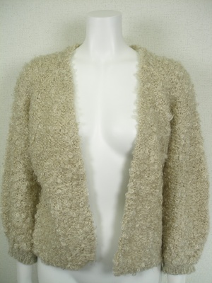 モコモコカーデをバルーンスカートでキュートに着こなして。コンパクトなデザインを選べばバランスも取りやすい!フェミニン度90%、エレガンス度10%。