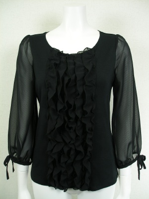 (ちょっとおしゃれにしたい日のコーデ)Aラインのスカートは細かいリボンをあしらったエレガントな生地です。トップスもふくれ織りのおしゃれな生地が特徴で上下合わせてとてもおしゃれなお出かけコーデの完成。 | |