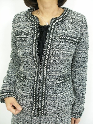 着崩すツイードも良いけど、たまにはスーツで決めてみたい。黒のパンプスでは硬いので、淡カラーのパンプスにして軽やかに!エレガンス度80%、フェミニン度20%。