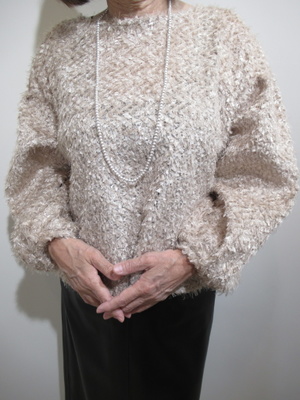(流行のフェイクフェザー生地のカットソー)今季よく登場するフェザー生地。ふわふわと動くたびになびいてとてもエアリー感がある一着。タイトのフェイクフェザーで甘辛のコーディネートに。