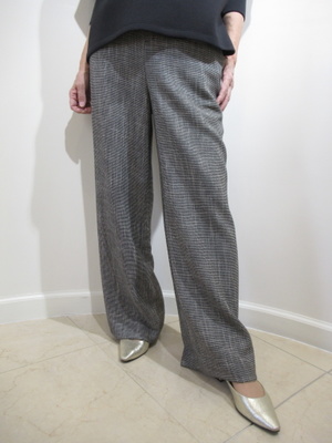 (ツィードのパンツでシンプルコーデ)ソフトワイドのパンツはすっきりしたデザインが特徴。合わせたカットソーも着やすさとおしゃれを兼ね合わせた一枚です。大人のシンプルコーデの完成。