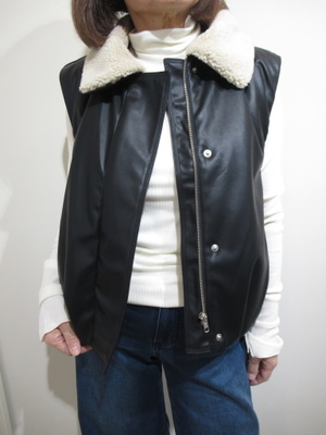 (フェイクレザー×デニムでつくる、大人の抜け感カジュアル)ボア襟付きのフェイクレザーベストで季節感を感じる大人カジュアル。柔らかいアイボリーのタートルが顔周りを明るく見せます。ワイドデニムで脚長効果も◎異素材ミックスで楽しむ大人の抜け感スタイル。