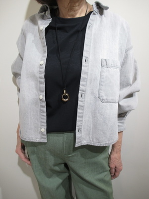| スポーティ・アクティブ (グレーのGジャン風シャツを羽織って)ネイビーが王道なGジャンもフレッシュなグレーを用いるとオシャレ度がアップしますね。また、ジャケットまでのかっちり感はなく、シャツとしても着れるのが嬉しい。花見などお出かけの多い春のコーデに合わせて。 |