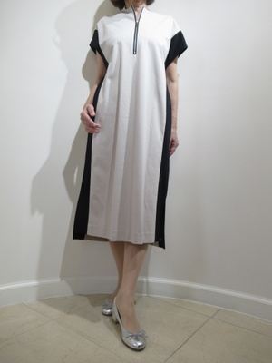 (配色ワンピースですっきりと)配色のコントラストが美しい、大人のための上品ワンピース。ゆったりとしたシルエットで体のラインを拾わず、リラックス感がありながらもすっきりとした印象に。フロントのジップラインが程よいアクセントになり、シンプルながらも洗練された 一着です。 | |