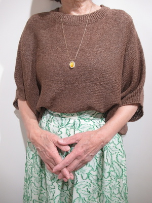 (ブラウン×グリーンコーデ)やわらかなブラウンニットに華やかなジャガードスカートを合わせた上品コーデ。立体感のある花柄が、コーデに程よい華やかさをプラスしてくれます。ゆったりとしたニットは体のラインを拾わず安心感のある着心地。ウェストインすることでバラン スよくすっきりとした印象に仕上がります。 | |