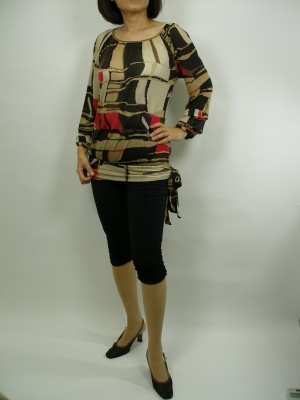 個性的な柄のカットソーは全体をブラウン系でまとめたらソフトな印象です!エレガンス度60%、スタイリッシュ度40%。