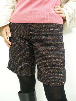 キルティングコートとショートパンツでアクティブに。でもツイードを使うとどこか上品ですよね!アクティブ度60%、フェミニン度40%。