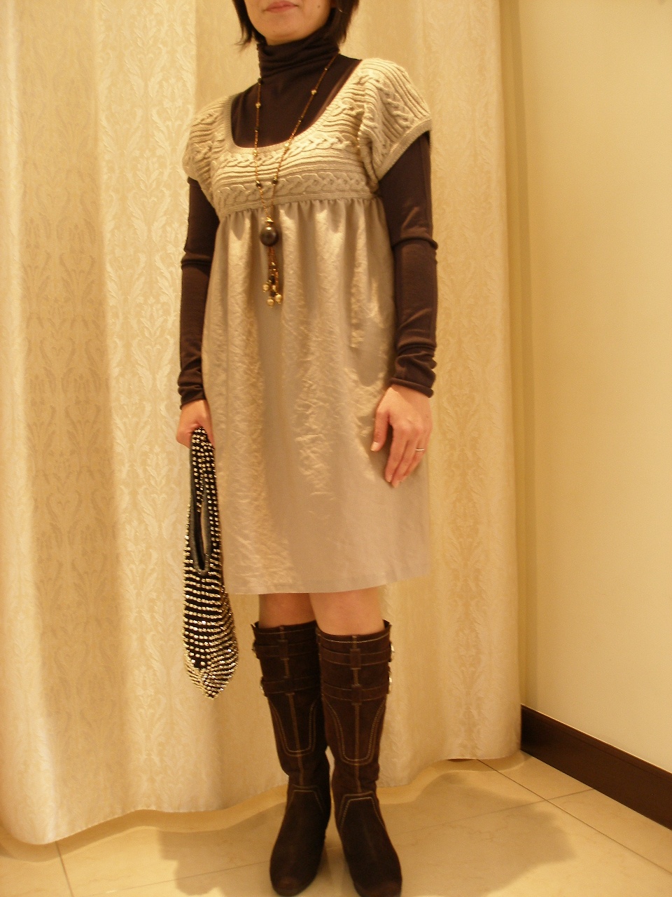 いつも可愛いスタイルをお好みです。今日もブーツを受け取りに見えてお薦めしたワンピースがとてもI様らしく 良くお似合いでした!キュートな一枚が撮れました。