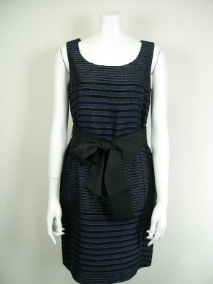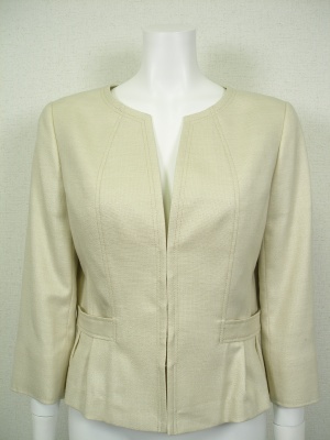 フェミニンなデザイン同士も、ベージュとネイビーの組み合わせなら知的なイメージに!エレガンス度80%、フェミニン度20%。