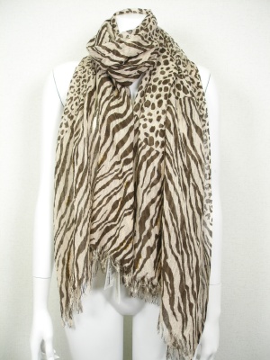 ボヘミアンなチュニックを、この春スタイリッシュに着こなして。アニマル柄ストールとタイトなパンツでスリムな印象に!スタイリッシュ度90%、アクティブ度10%。