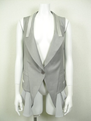 再度のデザインが綺麗なベスト。デニムもきちんとスタイルに早変わりです!スタイリッシュ度80%、アクティブ度20%。