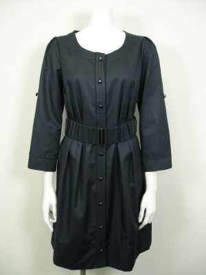 ベルト付きのワンピースをスプリングコート風に活用。白×ネイビーのシンプルコーディネートが洗練された雰囲気に!スタイリッシュ度90%、アクティブ度10%。