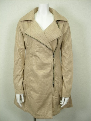 ライダース風のコートをシフォンのスカートでエレガントに着こなして!エレガンス度80%、フェミニン度20%。