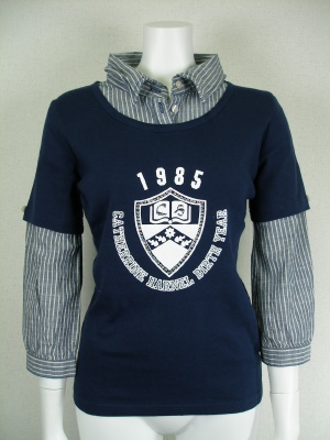 ボーイズライクで元気な着こなし。でもショートパンツをシャイニー素材にすれば大人のカジュアルに!アクティブ度90%、スタイリッシュ度10%。