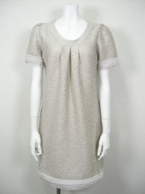 ミニ丈ツイード風ニットワンピをフォーマルっぽくアレンジ。コサージュやビッグリボンポシェットで、今年ならではの甘さをプラス!エレガンス度80%、フェミニン度20%。