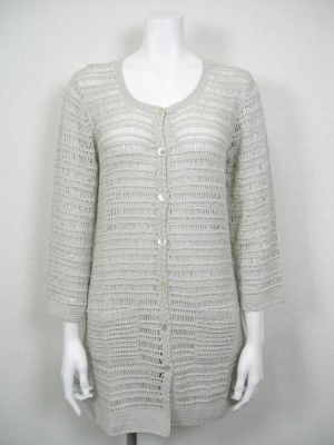 クロシェのロングカーディはさっと羽織るのにとても重宝。カジュアルなパンツでカッコ良く着こなしたい!スタイリッシュ度80%、アクティブ度20%。