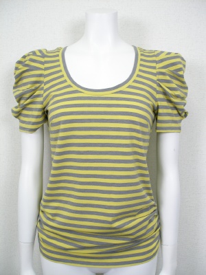 スカートの三段になったシルエットと肩のギャザーが好バランス。シンプルだけど旬な可愛さです!フェミニン度90%、アクティブ度10%。