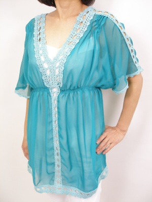 カジュアルデザインのチュニックもシースルーならスタイリッシュに。他は白でまとめるとクリアなブルーが際立ちます!スタイリッシュ度70%、エレガンス度30%。