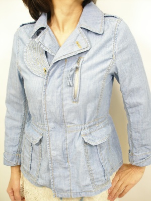 ダンガリージャケットはレーシーなスカートと合わせてガーリーに。淡いトーンでまとめたナチュラルスタイルにこの春注目です!フェミニン度60%、アクティブ度40%。