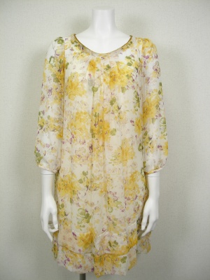シフォンのふんわりワンピはそのまま着てもカワイイですが、ウエストマークすると大人の表情に!エレガンス度60%、フェミニン度40%。