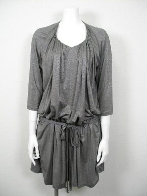ドレープが美しいワンピースは、レギパンで綺麗目カジュアルに。ターコイズのストールで颯爽と!スタイリッシュ度80%、エレガンス度20%。