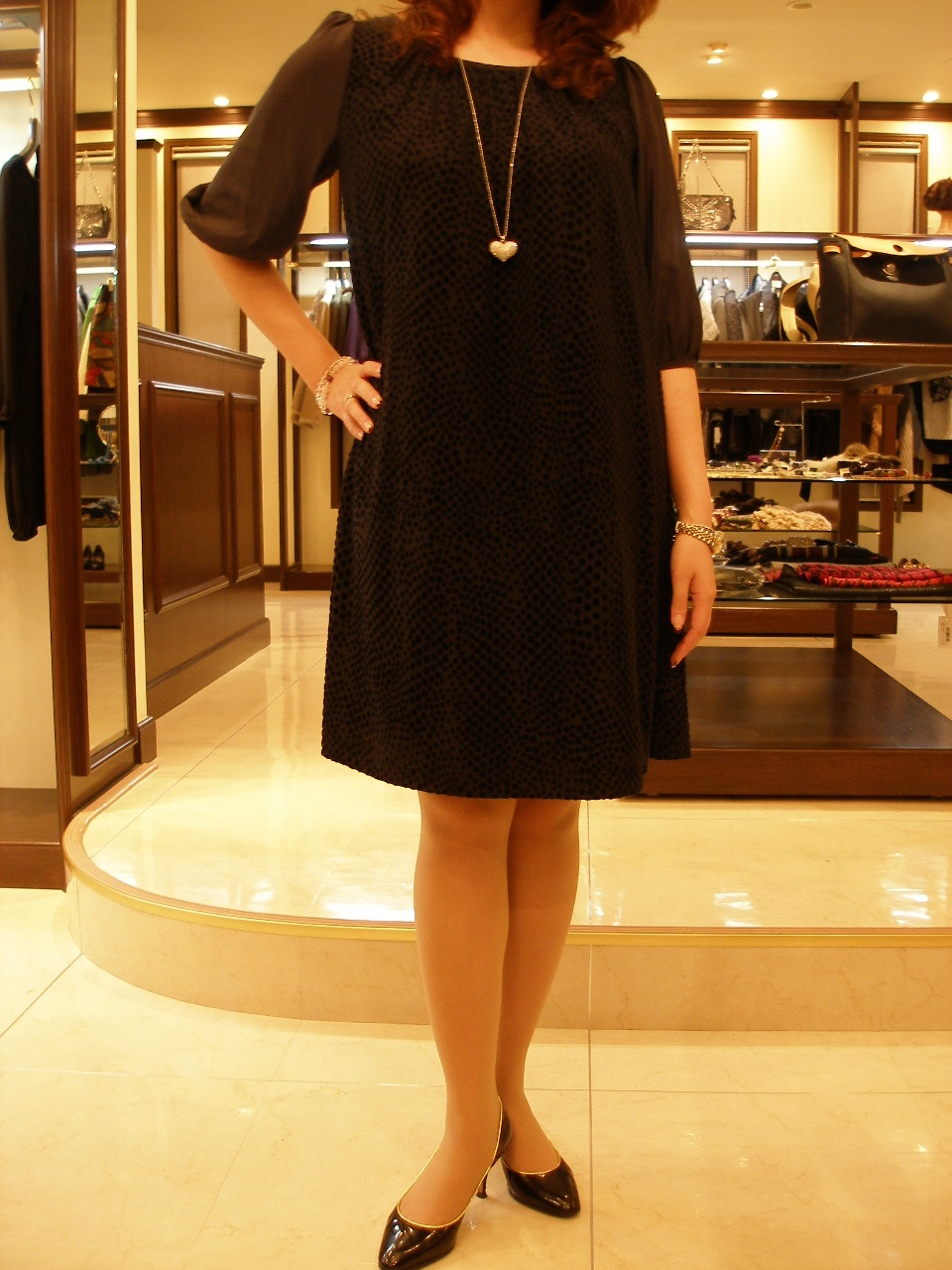 いつもエレガントな装いをされるS様のお嬢様。このワンピースは後ろにポイントのあるオシャレなデザイン。なんなく着こなして下さり、モデル立ちもバッチリデスね!