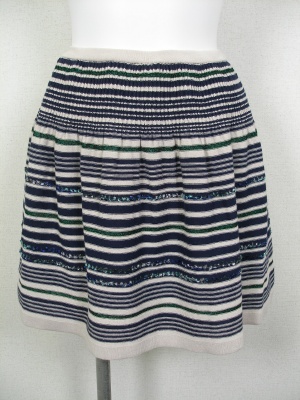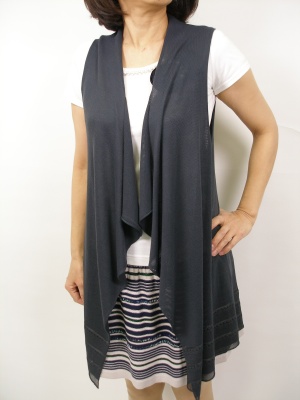 ボーダーのニットスカートとロングジレがピッタリとマッチしたちょっとキュートなコーディネート。カットソーのワンポイントがアクセントに!フェミニン度80%、スタイリッシュ度20%。