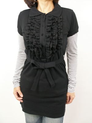 ポロシャツもロングワンピタイプならカジュアルをより可愛く演出してくれます。このままGWのお出かけに!アクティブ度90%、フェミニン度10%。