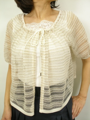 白×ネイビー。マリン系をフェミニンにコーディネート。クロシェのカーディもラメ糸がお出かけモードです!フェミニン度90%、エレガンス度10%。
