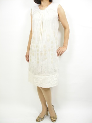 金色ラメの刺繍とボレロ。そしてバッグ、靴までゴールドを利したコーディネートで思いっきり上品に!エレガンス度100%。