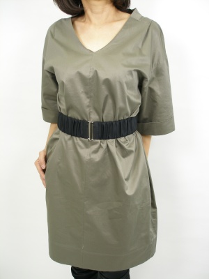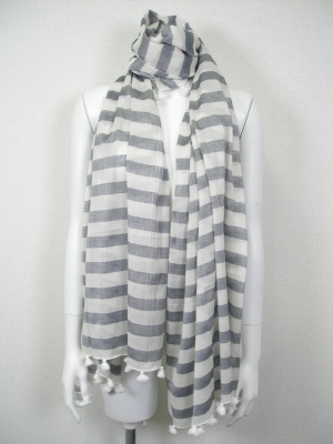メインはストール。ボンボンのトリミングがオシャレ度を引き立ててます。アースカラーのワンピの都会的コーディネート!スタイリッシュ度100%。