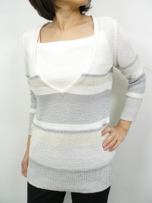 シルバーグレーの上品な組合せ。深く開いたVネックのニットがシャープさを引き立ててくれます!スタイリッシュ度100%。