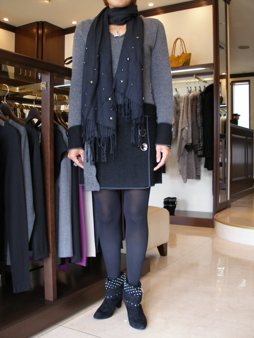 足が長くて素敵です。ワンピースは以前から気になっていらした。ブーツはSTORYに載っていた商品をご試着。バッチリ決まりましたね!