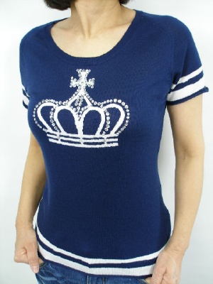 キラキラのクラウンがカワイイニット。デニムとのシンプルコーディも手抜きに見えない可愛さです!アクティブ度100%。